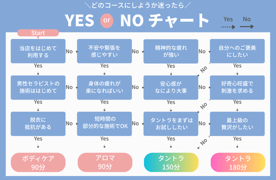 どのメニューを受けようか迷ったときに、こちらのチャートをご活用ください。